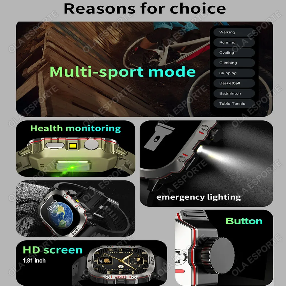 2025 Nowy dla Xiaomi Wojskowy inteligentny zegarek Mężczyźni IP68 5ATM Outdoor Sports Fitness Tracker Monitor zdrowia 1,81 cala