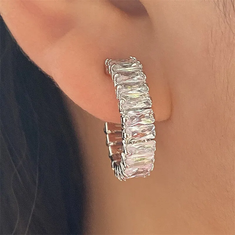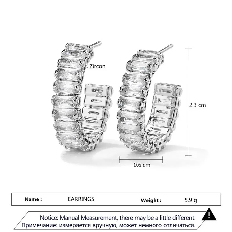 Nowe geometryczne prostokątne cyrkonie antyalergiczne kolczyki sztyfty dla kobiet moda złoty kolor kształt koła biżuteria imprez